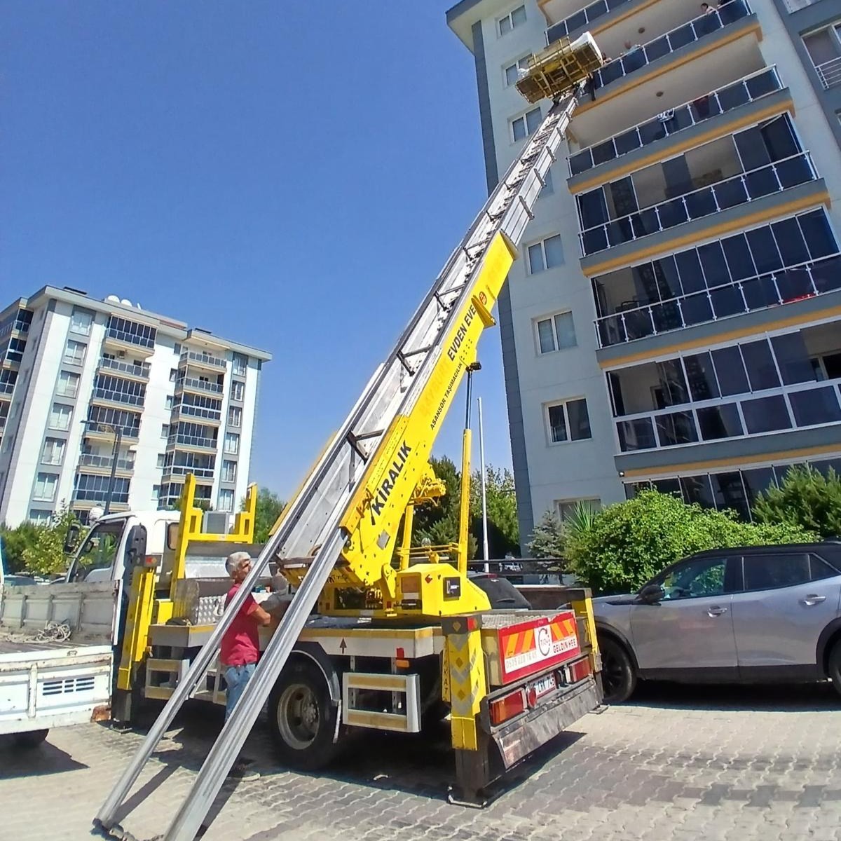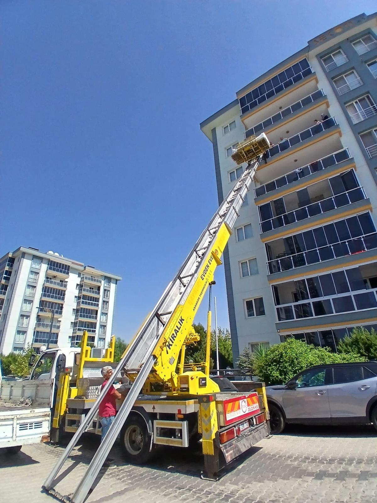 İzmir Menemen merkezli olarak İzmir'in tüm ilçelerinde (Çiğli, Karşıyaka, Aliağa, Bornova, Konak, Balçova, Gaziemir, Narlıdere, Güzelbahçe, Foça, Bergama, Dikili, Tire, Ödemiş, Torbalı, Menderes, Selçuk, Kiraz, Bayındır, Beydağ, Kınık, Kemalpaşa) Yüksek binalarda eşya taşıma sürecini hızlandıran mobil asansörlerimiz ile eşyalarınız hiçbir dar merdiven, dar kapı veya küçük bina asansörüne takılmadan güvenli şekilde taşınır. İletişime geçmeniz halinde uygun tarih ve ekip hızla planlanır.